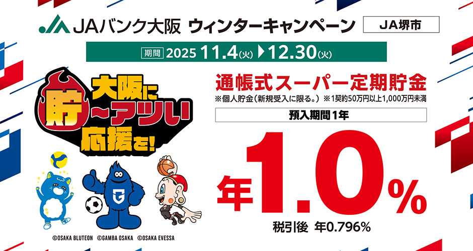 ![[JAカード会員さま限定]ご入会サンクスプレゼント](https://www.ja-sakai.or.jp/wp-content/themes/ja_sakai_ws/images/banner_blank12.jpg)