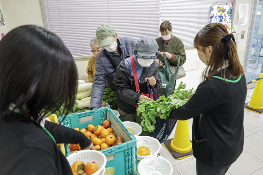 規格外農産物の無料配布を実施 2025.11.21 美木多支所は11月13日に支所協同活動を開催しました。美木多地区農産物のおいしさを知ってもらうために、また、SDGsの一環として形が揃わない等の理由で出荷できない規格外の農産物を、店頭で配布しました。来店客は、美木多支所管内の農家から提供されたミカンや柿、安納芋、ダイコンなどから2つ選び来店者にプレゼントしました。多くの方々が支所を訪れ、「大きさが不揃いでも味は同じなので、いただけてうれしい。おいしく食べたい」と好評でした。 写真ギャラリー 支所協同活動報告一覧へ