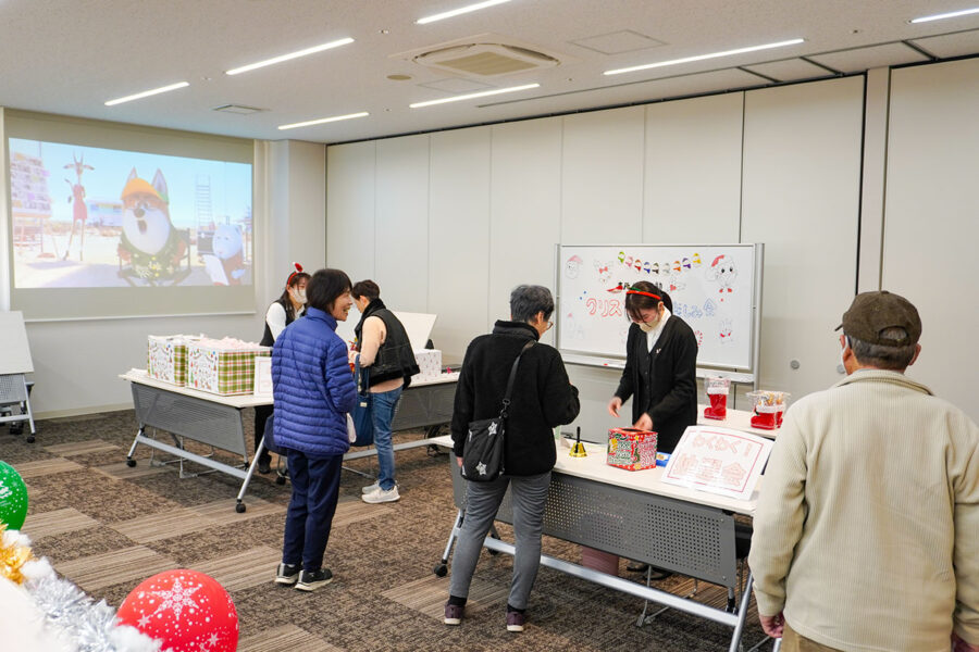 地域住民とのふれあいを目的にクリスマス会を開催 2025.12.23 本所は支所協同活動として、12月18日に地域住民とのふれあいを目的に、クリスマスブーツ抽選会やお菓子のつかみ取り、輪投げゲームや千本つりを楽しめるクリスマス会を開催しました。また、会場にはコメルくんが登場し一緒に遊んだり記念写真の撮影をしたりと来店者と一緒に楽しみました。 写真ギャラリー 支所協同活動報告一覧へ