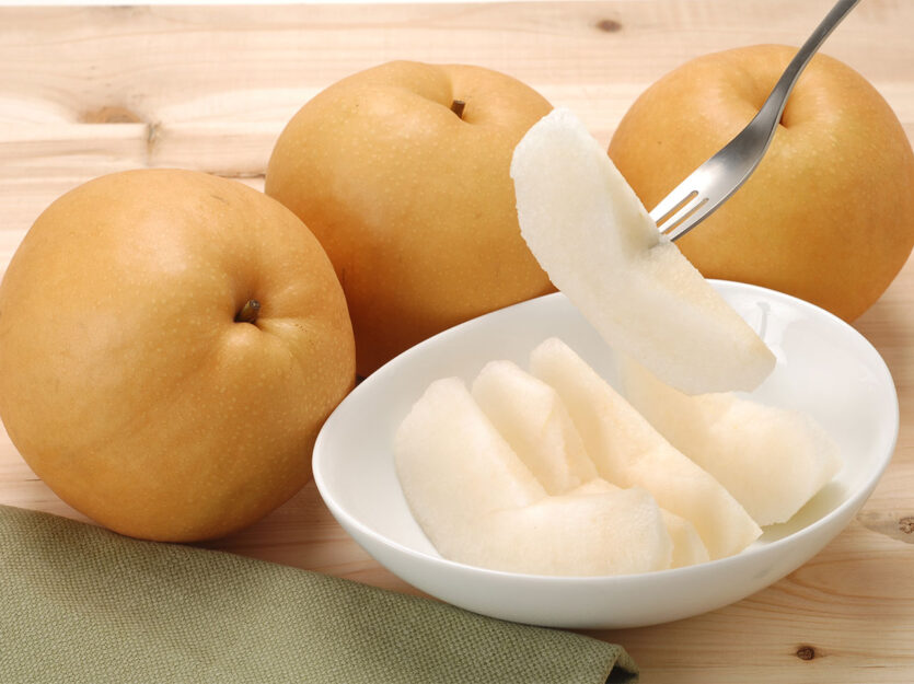 日本では弥生時代に栽培が始まったと言われており、日本で食されている梨には、「日本梨」「西洋梨」「中国梨」の3種類があります。その中でも国内生産量が圧倒的に多いのが「日本梨」で様々な品種が栽培されており、皮が褐色のものを赤梨、黄緑色のものを青梨と呼んでいます。主な産地として、福島県、栃木県、長野県などがあります。