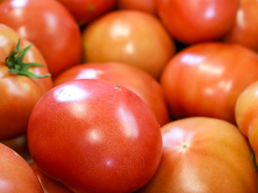 中南米のアンデス高地が原産といわれるトマトはナス科の果菜類です。日本で食用にされたのは明治時代で、本格的な栽培が始まったのは昭和になってからです。世界中で親しまれている野菜ですが、主に生で食べるのは日本くらいで、世界的には加熱調理して食べることが多いです。日本では熊本県や北海道、茨城県が産地ですが、堺市でも栽培農家は多く、直売所ではスーパーでは手に入りにくい完熟トマトを買うことができます。