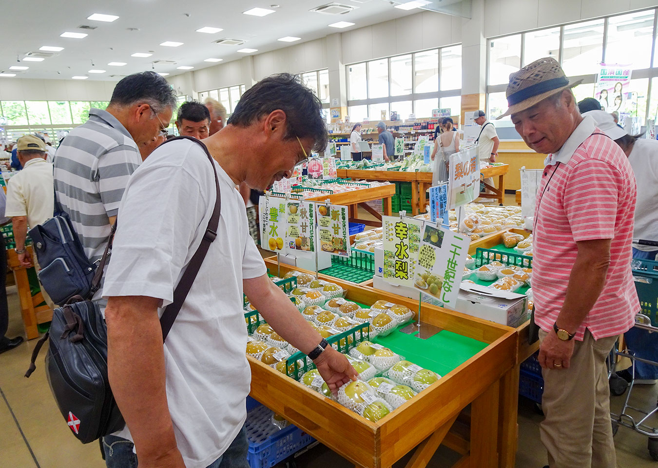 9月9日に36人が参加して、JA大阪南農産物直売所「あすかてくるで」を視察しました。店内に陳列された新鮮な野菜や果物を視察し、出荷規格や価格、梱包方法等を学びました。その後、犬鳴山温泉にて懇親会を開催し、会員相互の親睦を深めました。
