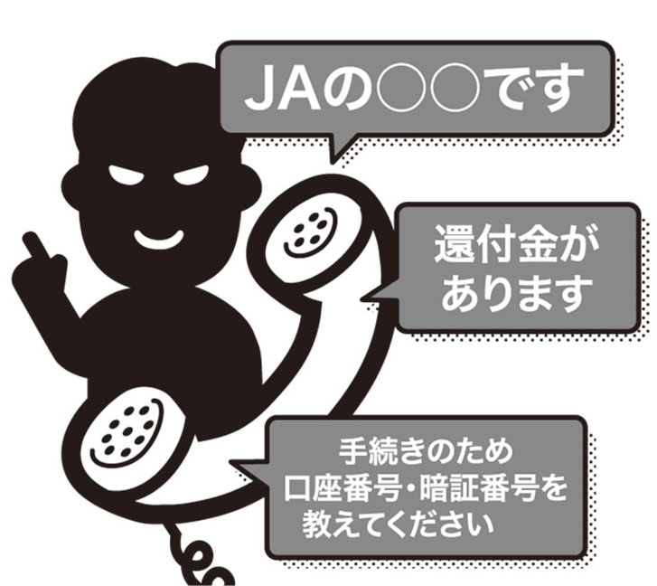 役所やJAの職員が電話で口座番号・暗証番号を聞き出すことは絶対にありません。