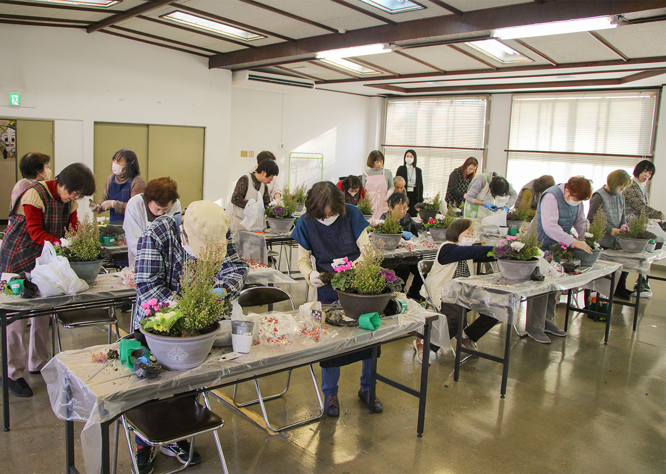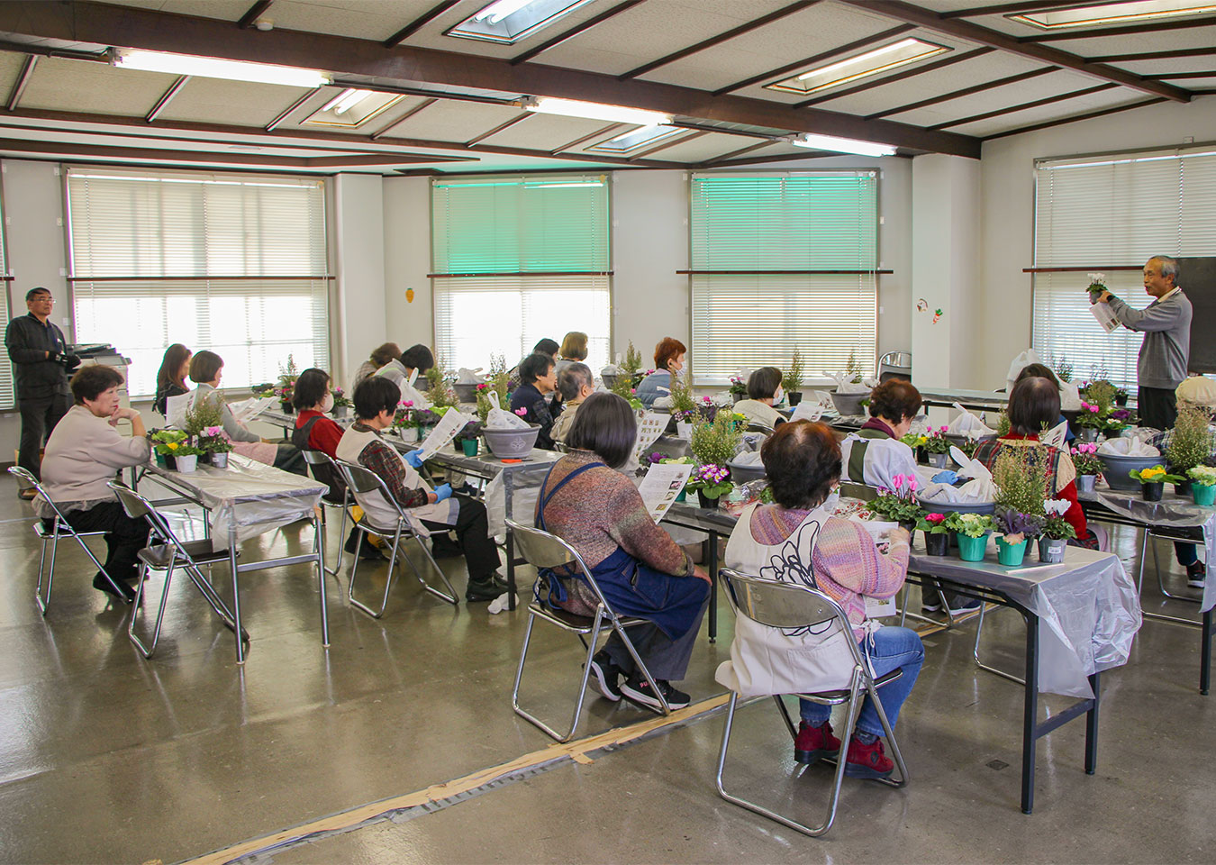 12月8日に19人が参加して、NPO法人グリーンカレッジの角野氏と直木氏を講師に迎え「寄せ植え講習会」を開催しました。
