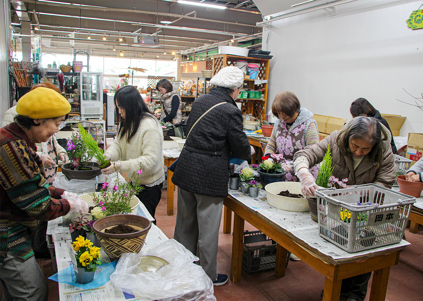 美木多支部が寄せ植え講習会を開催 2025.12.17 女性会だより 12月10日に17人が参加して、リバティ岡本の岡本加寿絵氏を講師に「寄せ植え講習会」を開催しました。花の色の組み合わせや植え付け時の注意点等を学び、クリスマスからお正月以降も楽しめるよう、会員がそれぞれ選んだ花材をバランスよく配置し完成させました。