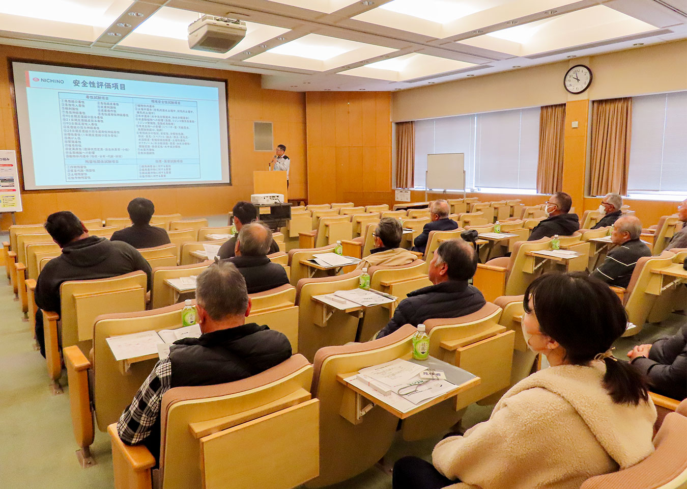 大阪府河内長野市にある、国内初の農薬専業メーカーである日本農薬株式会社を視察し、事業概要について説明を受けたのち、新しい農薬を「3年に1剤創出する」というミッションを掲げて設立された総合研究所を見学しました。その後、信貴山観光ホテルで懇親会を行い、会員相互の親睦を深めました。