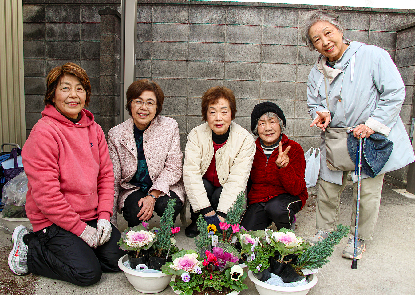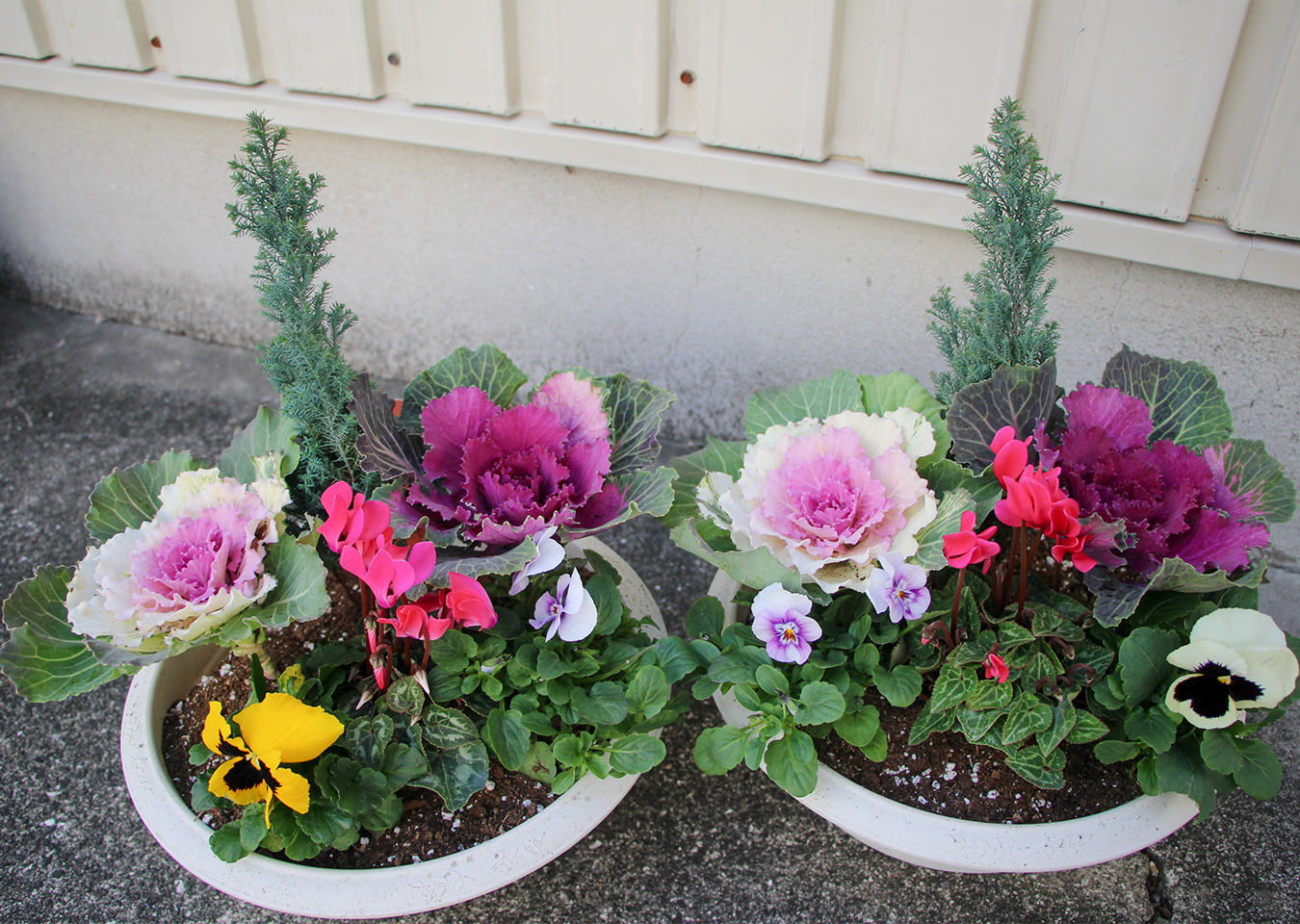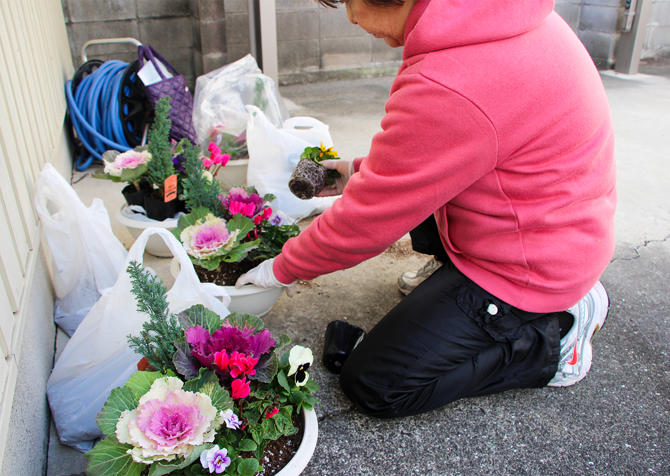 津久野支部は12月17日に20人が参加して、中辻󠄀ノブ子氏を講師に迎え、「寄せ植え講習会」を開催しました。クリスマスからお正月以降も楽しめるよう、紅白葉ボタンやシクラメン、クレストなどをバランスよく配置し、完成させました。