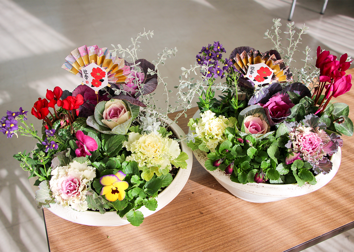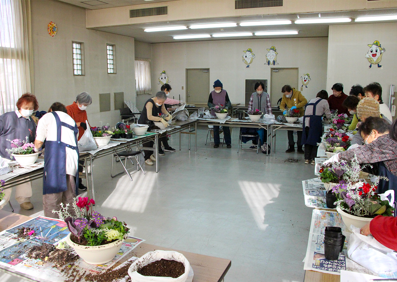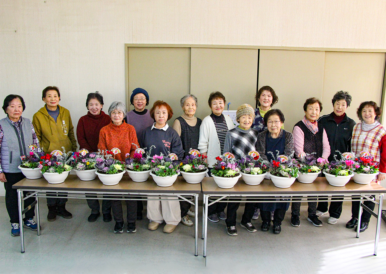 久世支部が寄せ植え講習会を開催 2025.12.26 女性会だより 久世支部が12月18日に14人が参加して、花夢人里亭(カントリーガーデン)の八田則子氏と灰掛優子氏を講師に「寄せ植え講習会」を開催しました。 最初に花の種類や特徴、配置の仕方などのコツを学び、葉ボタンやガーデンシクラメン、ネメシアなど数種類の花をバランスよく配置し、お正月用の寄せ植えを完成させました。