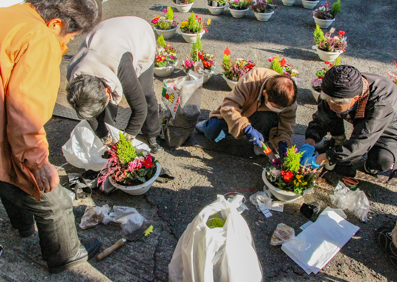東陶器支部が寄せ植え講習会を開催 2025.12.26 女性会だより 12月11日に20人が参加して、「寄せ植え講習会」を開催しました。クリスマスからお正月以降も楽しめるよう紅白葉ボタンやシクラメン、ジュリアンなどをバランスよく配置し完成させました。