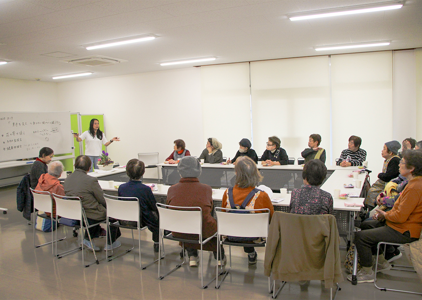 北八下支部が寄せ植え講習会、「終活のための片付け」の座談会、健康体操体験会を開催
