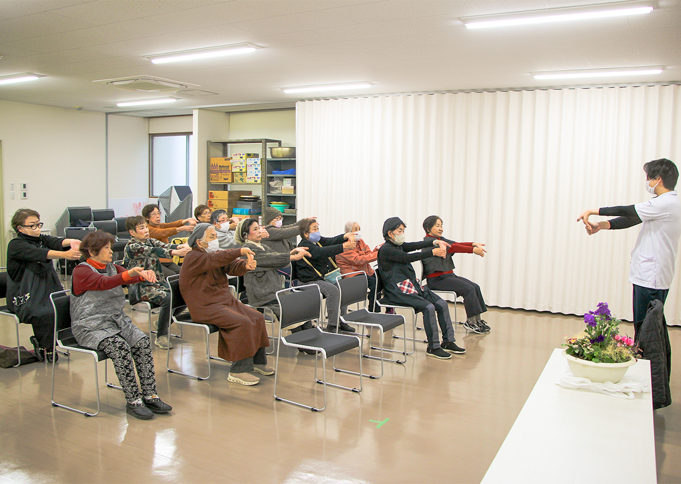 北八下支部は12月17日に27人が参加して、寄せ植え講習会、「終活のための片付け」の座談会、健康体操体験会を開催しました。クリスマスからお正月以降も楽しめるよう、紅白紅白葉ボタンやビオラ、シクラメン、プリムラ、ストックをバランスよく配置し、完成させました。その後、「家の光」2024年12月号に掲載の「片付けから始めるおきらく終活」の記事を活用して、10月17日に北支所協同活動で3支部(中央支部、五箇荘支部、北八下支部)が実施したバザーを振り返り、今後の課題や改善点を意見交換した後、アオキ鍼灸治療院 青木隆二先生を招いて健康体操体験会を開催し、イスを使ったストレッチや指を使った頭の体操をしました。
