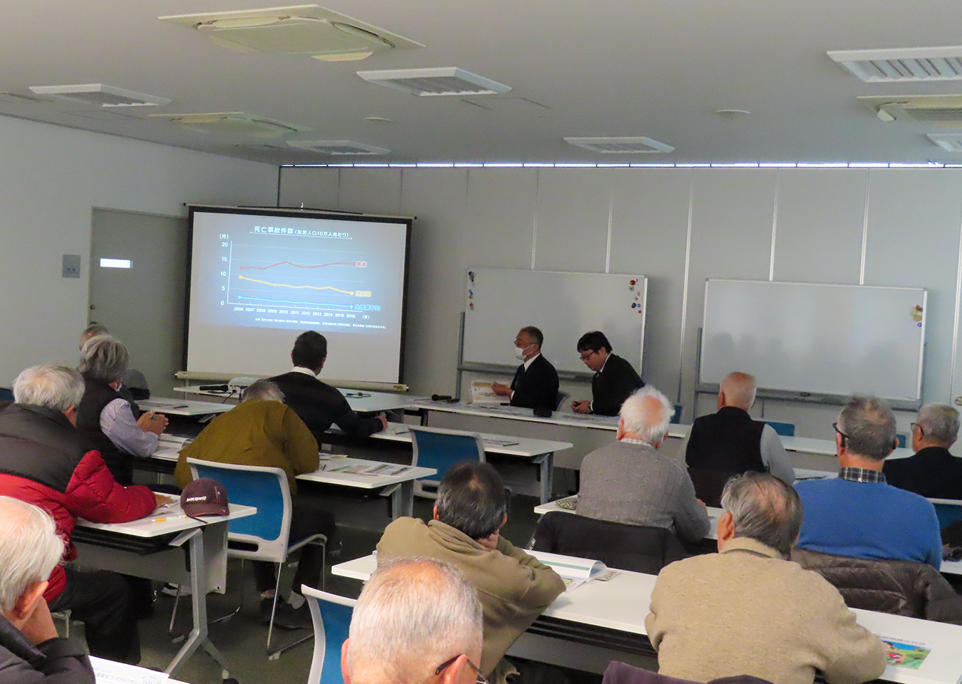 野菜振興会(南八下支部、日置荘支部)が合同研修会を実施 2026.03.17 振興会だより 2月19日にJA大阪中央会とJA大阪共済連から講師を招き、21人が参加し、南八下支部と日置荘支部が合同研修会を実施しました。「農業を取り巻くリスクについて」をテーマに生活や農作業中のケガ、自然災害による施設損壊などの農業経営に大きな影響を及ぼすリスクとその対策について学びました。その後、河内長野荘にて親睦会を開催し、会員相互の親睦を深めました。