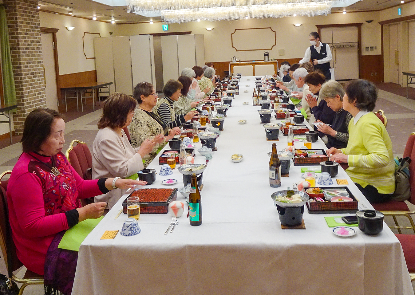 京都府八幡市の淀川河川公園の背割堤では、全長1㎞を超える桜並木のトンネルに癒された後、ホテル京都エミナースで会席料理を堪能し、会員相互の親睦を深めました。午後からは、「古都京都の文化財」として世界遺産にも登録されている仁和寺を訪れ、お多福桜という愛称でも親しまれている御室桜の美しさに心を打たれました。その後、八つ橋庵とししゅうやかた を訪れ、華やかで緻密なししゅう美術館を見学し、お買い物を楽しみました。