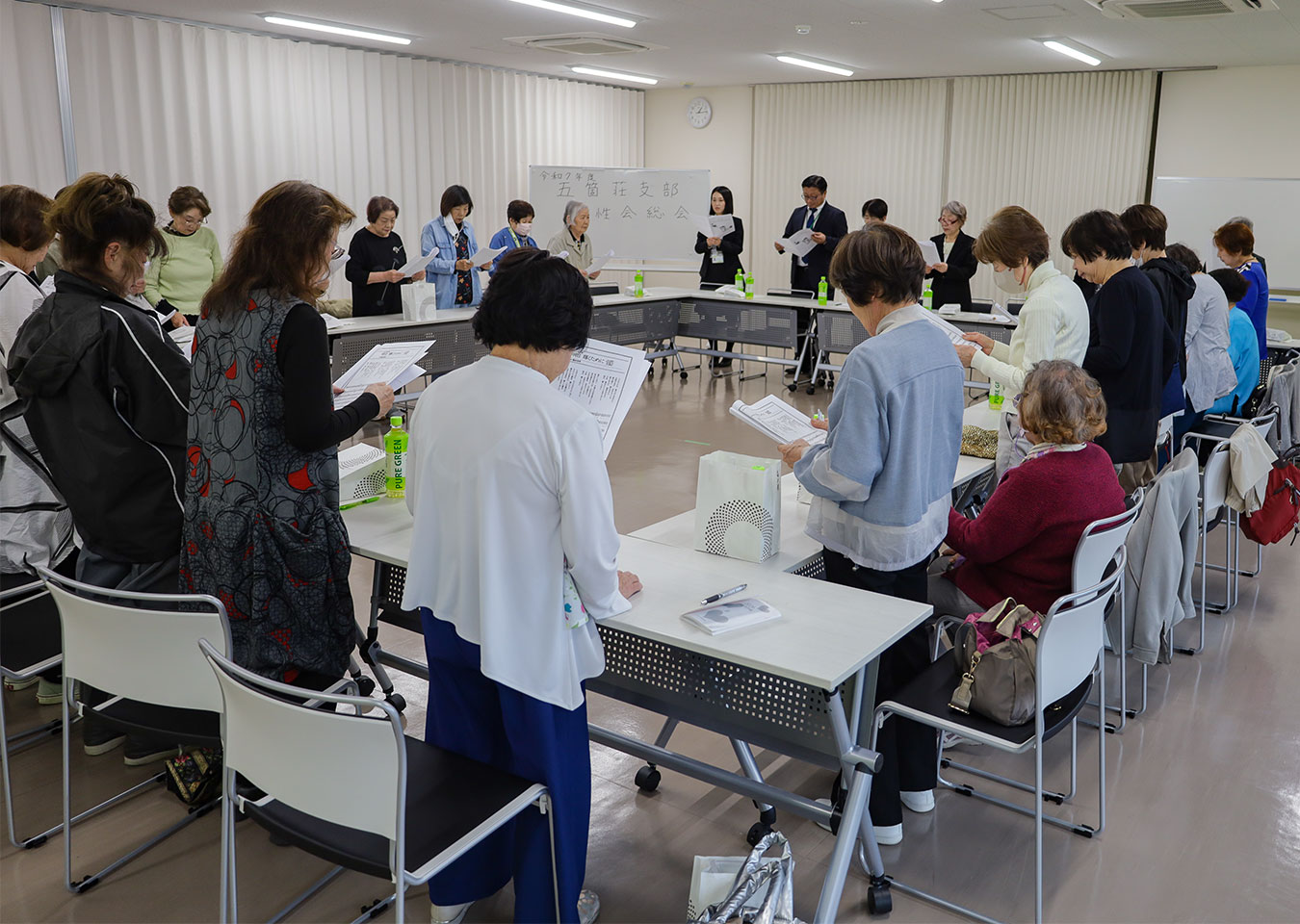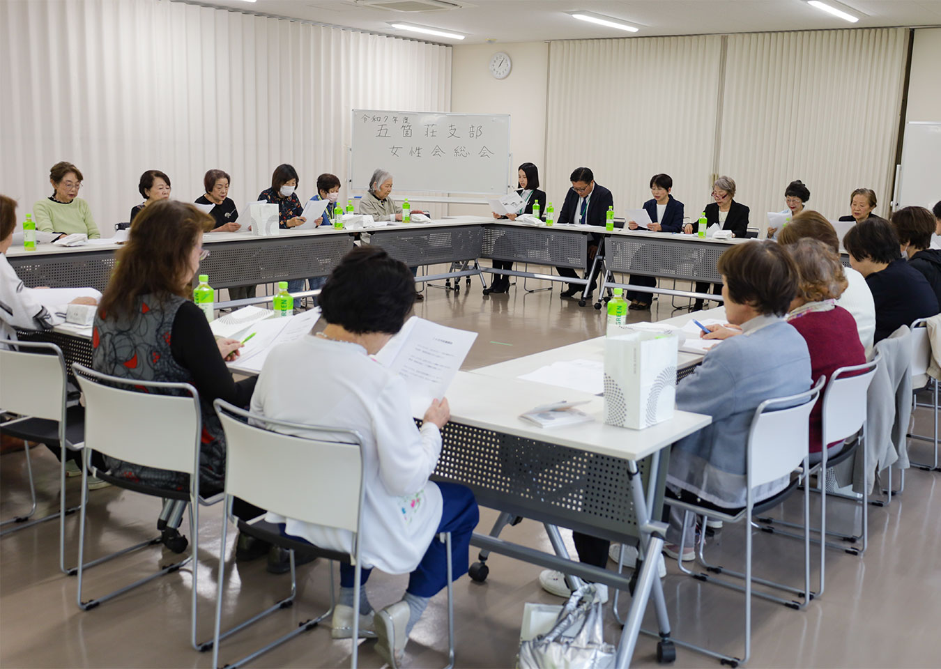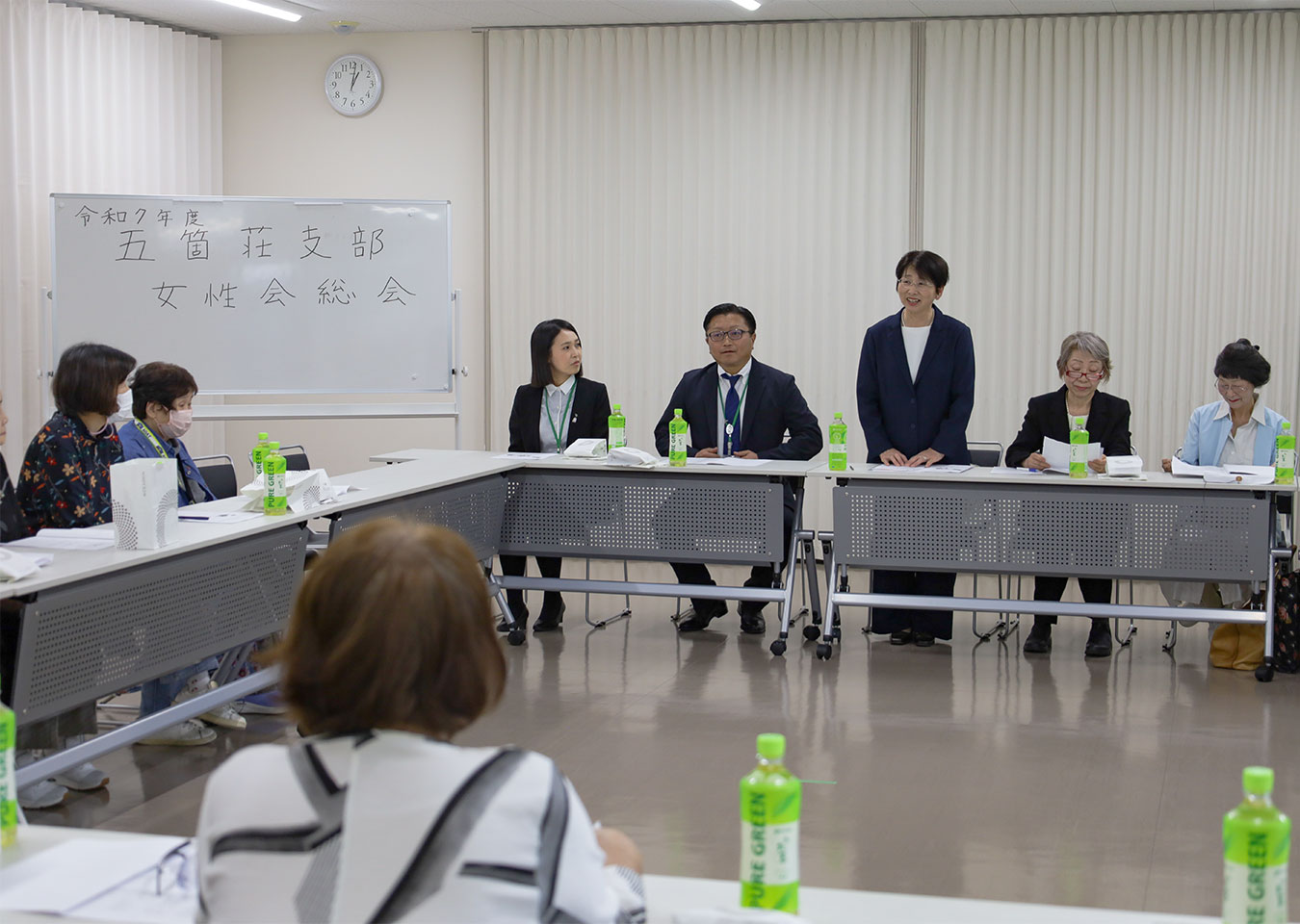 五箇荘支部が総会を開催 2026.04.20 女性会だより 4月15日に29人が参加し総会を開催しました。 JA女性組織綱領唱和から始まり、令和7年度事業報告・収支決算報告、令和8年度行事予定や収支予算などの議案が上程され、全議案が可決承認されました。 また、令和8年度の役員や各クラブの紹介を行い、全員でJA女性の歌“明日輝くために”を斉唱しました。