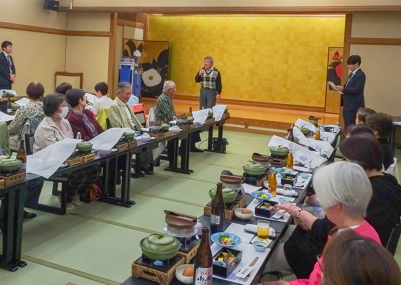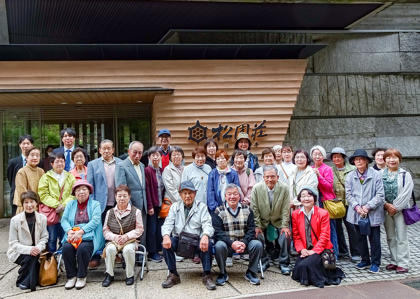 美木多支所が親睦旅行を実施 2026.04.21 年金友の会通信 4月13日に29人が参加して、京都府 亀岡方面へ親睦旅行を実施しました。 元禄年間に創業した丹波 大石酒造株式会社の丹波路「酒の館」では、酒造りの道具や工程などを見学した後、生酛造りの日本酒の試飲を楽しみました。その後、京都 湯の花温泉 松園荘 保津川亭にて、会席料理を楽しみ、会員相互の親睦を深めました。午後からは、八つ橋庵とししゅうやかた を訪れ、華やかで緻密なししゅう美術館を見学し、お買い物を楽しみました。